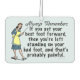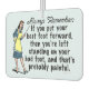 The original, funny demotivational / fake inspirational quote on this car air freshener says, "Always remember: If you put your best foot forward, then you're left standing on your bad foot, and that's probably painful." It has a retro 40's or 50's graphic of a woman holding a teacher's pointer and wearing an apron, holding out one foot while she stands on the other. The background is light blue. This is a humourous saying for anyone who likes sarcasm and would also be good for a podiatrist.