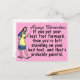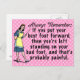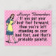 The original, funny demotivational / fake inspirational quote on this postcard says, "Always remember: If you put your best foot forward, then you're left standing on your bad foot, and that's probably painful." It has a retro 40's or 50's graphic of a woman holding a teacher's pointer and wearing an apron, holding out one foot while she stands on the other. The background is pink with faint white-pink polka dots. This is a humourous saying for anyone who likes sarcasm and would also be good for a podiatrist.