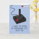 Funny gamer valentines day card featuring a blue background that can be changed to any colour, a retro computer joystick, 4 lives with 1 remaining, and the cute saying "I want to spend my remaining life with you".