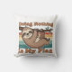 A playful square pillow with a retro sloth embracing slow living vibes.