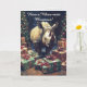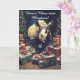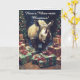 Funny Christmas card featuring a rhinoceros standing among Christmas gifts. Text says, "Have a rhino-mite Christmas!" You can customise both the greeting on the front and the message inside the card to your liking.