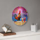 The chicken on this humourous clock knows what time it is - it's time to drink, of course, because it's COCKtail time! This silly tropical clock is perfect for anyone who loves the sea and chickens and margaritas and endless summer in a beautiful paradise. It shows a rooster crowing with a couple colourful beverages and a pair of sunglasses. The rooster stands on sand next to the ocean and a vibrant sunset. In the background, palm fronds and vivid fruit slices float opaquely in the sky with a dreamy look, because clearly this rooster has had a little too much to drink. This fun clock is perfect for a beach house, a summer cottage, a tropical tiki bar - or the chicken coop.