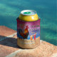 Funny Rooster Chicken Drinking Tropical Beach Name Can Cooler
