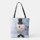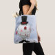 This tote bag features a round jolly snowman, complete with top hat, scarf and carrot nose. Perfect for carrying your Christmas shopping, or Christmas Gifts.