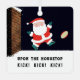 Funny rugby Christmas ornament holiday gift featuring cartoon Santa upon the housetop, kicking a rugby ball. To customise dit text to add name.