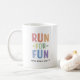 Running is a popular form of exercise that has been shown to have numerous physical and mental benefits. This quirky coffee mug features the phrase "run for fun, who does that?" in bold colourful lettering. At first glance, it may seem like a simple joke poking fun at the idea of voluntarily running for enjoyment. But for those in the know, it holds a much deeper meaning. As any dedicated runner will tell you, running is not always fun. In fact, it can be downright gruelling at times. The early mornings, the sore muscles, the dreaded "wall" - it takes a special kind of person to find joy in all of that.