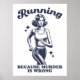 Transform your home gym, office, or bedroom with a bold splash of running humor and a striking retro aesthetic. This funny running wall art poster features a high-resolution, vintage-style illustration of a determined women's runner with the hilarious slogan, "Running Because Murder Is Wrong." It’s a sophisticated way to showcase your love of the sport while sharing a mischievous laugh with anyone who enters the room.