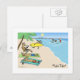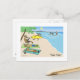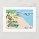Humourous Christmas Postcard. Cartoon of Santa and his reindeer on a sunny tropical beach vacation. Shirtless Santa Clause in red swimming trunks is riding the waves. One reindeer is running with a surfboard. Other reindeer are tanning or reading on the sand. The title is “Yule Tide.” A funny holiday postcard great for personal or business mailings. Visit Jenn's Doodle World for more Xmas cartoon cards and funny gifts.