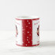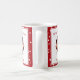 Cute Christmas mug with funny Santa Claus breaking through. Red snowy background. Easily personalise this Christmas mug with your own text. - Kate Eden Art.