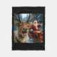 Funny Santa Claus In Sleigh With Reindeer Christma Fleece Blanket