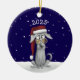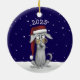 This hand-drawn ceramic ornament features a laid-back pup in sunglasses and a Santa hat, sitting peacefully in a snowy scene under the year 2025. It's the perfect mix of festive and funny, with a dash of canine cool.