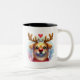 Funny Santa Dog Red nose deer Two-Tone Coffee Mug