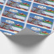 This fun and unique gift wrap features a cartoon illustration of Santa crashing into a house with this sleigh pulled by elephants. (He tried donkeys the year before and they weren't much better). That's why he uses deer now.