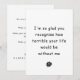 Love that there is a bit of humour with it. Quality card. Really good, clean print job