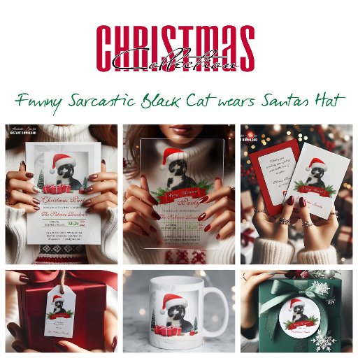 Funny Sarcastic Black Cat Santas Hat Christmas Designed by Houria Sabrine