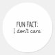 Funny Sarcastic Fun Fact I Don't Care Saying For W Classic Round Sticker