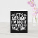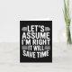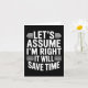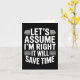 Funny sarcastic let's assume right will save time card