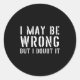 Funny Sarcastic Mens I May Be Wrong But I Doubt It Classic Round Sticker