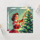 Looking for a funny Christmas card for a friend or family member? Add a little humor into their holiday season with this cute retro mid-century graphics and humor. A woman hanging up Christmas lights on the tree saying, 'May all your Christmas lights work on the first try." Because honestly, we know they won't, right? Inside is some more Christmas humor to make your friend laugh.