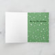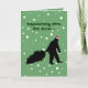 This funny customisable Sasquatch Christmas card has a silhouette of a Sasquatch wearing a red and white Santa hat and pulling a Xmas tree. The background is green with snow, but you can delete that if you want.