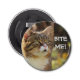 Badass cat with attitude slogans. "Bite me" text on magnetic bottle opener.