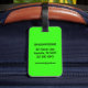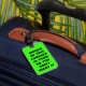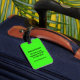 Funny Saying Neon Lime Green Luggage Bag Tag is a fun and humourous way to mark you suitcase! Trendy neon colour on both sides and front of tag has funny phrase "Owner of this luggage is poor so you don't want it." Back of tag has easy template to follow which includes your name, street address, city, state, zip code, phone number and email.
