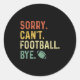 Funny Saying Sorry. Can't. Football. Bye. Classic Round Sticker