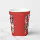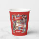 Paper cups featuring a cartoon animal menagerie of enthusiastic sports fans waving their scarves in celebration of the person or event of your choice. Change some or all of the default "HAPPY BIRTHDAY TO YOU!" text to your preferred message and/or name; text changes are reflected on both sides. The animal crowd includes dogs, a cat, a lizard and a fruit bat.