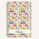 Funny custom name Notebook with watercolor yellow school bus in pattern. Cheerful and perfect Notebook personalised name for students or teachers going back to school.