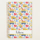 Funny custom name Planner with watercolor yellow school bus in pattern. Cheerful and perfect Planner personalised name for students or teachers going back to school.
