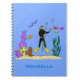 This cute design features our cartoon scuba diver surrounded by curious sea life. Bright happy fun!