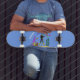 Funny scuba diver and fish sea creatures cartoon skateboard