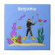 Funny scuba diver and fish sea creatures cartoon tile