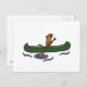 Funny sea otter is canoeing in a green canoe in this cute fun original art design.