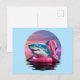 Funny Shark in Flamingo Pool Float Vaporwave Holiday Postcard