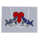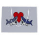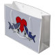 Two fun sharks in love with big red heart behind them original art gift bag. Can also add custom text when ordering.