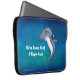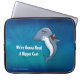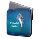 Here's a fun sleeve to protect your computer! Funny shark trying on a coat on a beautiful blue sea background.