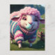 A funny cartoon like sheep chews bubble gum while wearing a sweater fantasy AI generated art