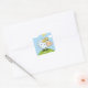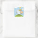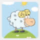 A cartoon style sheep with a funny grin on top of a hill. This design looks really effective on these Stickers