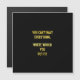 Yellow text on a black background humorously questions the practicality of having everything. It prompts the reader to consider the limits of space and possession.