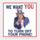 Funny Silence Your Phone sign sticker with Uncle Sam We Want You to turn off your phone. Adds a touch of humour to the request to turn off cell phones in a particular area, business, classroom, or event.