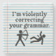 You've probably seen the popular nerdy phrase, "I'm silently correcting your grammar." This funny spoof drink coaster design takes it to a new level. It says, "I'm violently correcting your grammar" in a typewriter font and shows a stick figure shooting another stick figure with an arrow. The background looks like lined paper.