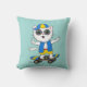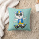 Funny Skater Cat Dressed in Blue & Yellow T-Shirt Cushion