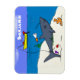 Funny sleeping shark and fishing cartoon magnet