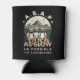 Funny can coolers for outdoor adventure enthusiasts with a cute illustration featuring a sloth hiking team resting near mountains and a quote "ASAP - as Slow as Possible" placed on a black background. The template makes it easy to personalise with your family name to make a keepsake for a family reunion or a souvenir for the camping trip.