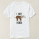 Get a laugh with funny sloth t-shirt featuring a graphic of a sloth hugging a tree branch with the caption "I got wood". This shirt has a double meaning and is perfect for adding your own funny sloth memes and jokes. Customise and personalise to make it your own. Warning: shirt may contain offensive and adult humour. Customisable t-shirt, Funny sloth memes, Personalised t-shirt. Cool sloth jokes, Obscene humour, Rude and Racy t-shirt online.