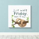 Funny Sloth on a Tree � Just Make It to Friday Cla Canvas Print