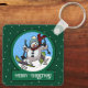 Funny Snowman Merry Christmas! Skiing Cartoon Key Ring