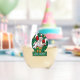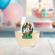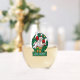 A funny snowman cartoon on a special glass for Christmas. Use "Personalize this template" to change the "Merry Christmas!" text and create a unique, customized item. It's maximum Christmas with this excited snowman dressed up as Santa Claus, jumping out of a Christmas present like a jack-in-the-box. The surprise gift is wrapped in gold paisley wrapping paper and a green ribbon with white snowflakes.