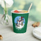 A funny skiing snowman on paper cups to add some magic to your Christmas party. Use "Personalise this template" to tweak the text or year and make a unique, customised xmas accessory; text changes are reflected on both sides. The cups feature a cartoon of a cute snowman with a carrot nose, dashing downhill through the snow on skis, in woolly winter hat and tartan scarf. An upbeat image for the winter holidays.
